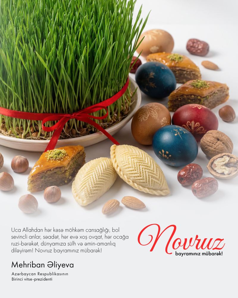 “Uca Allahdan hər kəsə möhkəm cansağlığı, bol sevincli anlar, səadət, hər evə xoş ovqat, hər ocağa ruzi-bərəkət, dünyamıza sülh və əmin-amanlıq diləyirəm! Novruz Bayramınız mübarək!”