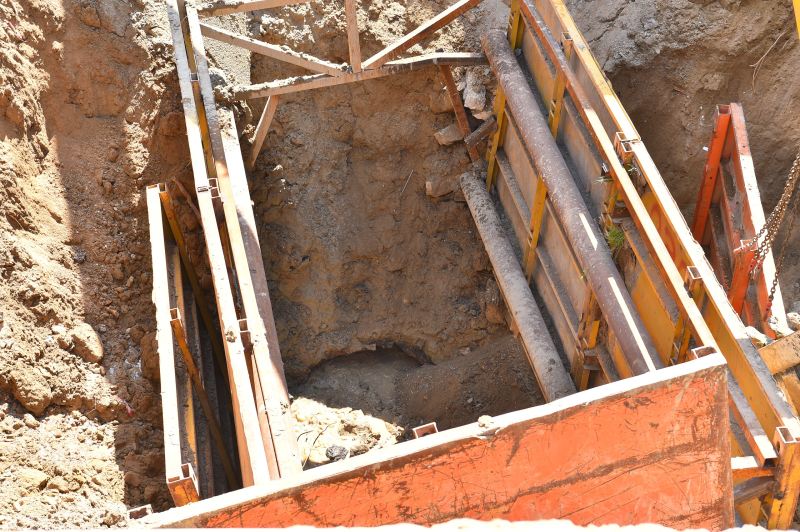 Üzərində tikilən evlər səbəbindən Xətai rayonu, Rəşid Bağırov küçəsində çökən diamertri 1400 mm-lik tullantı su kollektorunun təmir-bərpa işləri davam etdirilir.