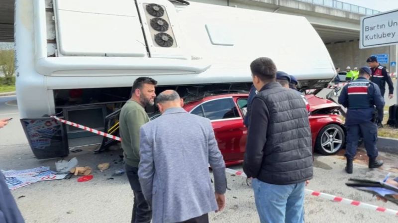 Türkiyədə Bartın Universitetinin Kutlubay kampusu önündə sərnişinlə dolu şəhər avtobusu avtomobilin üzərinə aşıb.