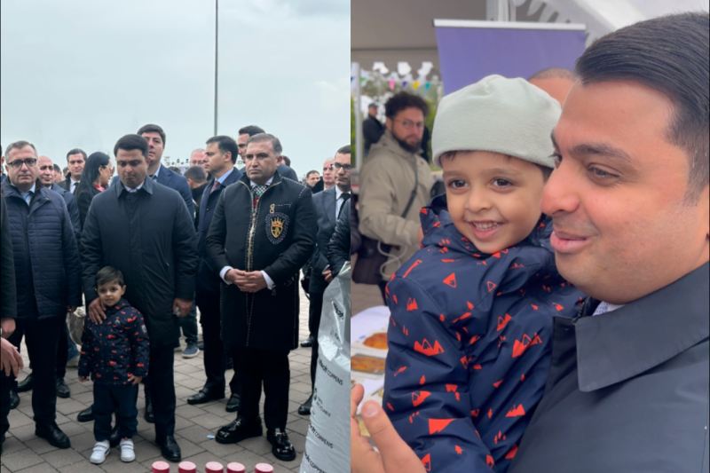 İcra başçısı Mirhəsən Seyidov balıq festivalına azyaşlı oğlu ilə qatılıb. O, uşağı qucağına alaraq ətrafındakılara "mənim oğlumdur" deyə təqdim edib.